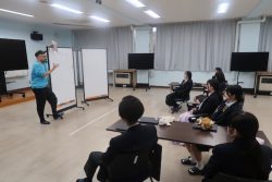 生徒さんはまず、賛成派・反対派に分かれてリサーチを行いました。その後、それぞれが調べた内容を一度発表します。この発表が、次のリサーチや反論を考えるための素材になります。