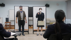 今回のワークでは、その国の人の言葉、動きなどの特徴を捉えて表すことを体験しました。調べた情報をそのまま伝えるのではなく、声や身体を通して「その人らしさ」を表していく。そのプロセスには、これまで取り組んできた作劇やディベートと地続きの演劇的な要素を感じ取ってくれたのではないでしょうか。