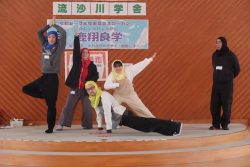 いくつかの班に分かれて、次の修行へ。修行忍者1人は、鳥劇忍者から出されたお題に沿ったジェスチャーをするのじゃ。このたびは、【ようす】を表すお題で、前期の修行よりもレベルアップしておる。ここでの掟は、しゃべらないこと。言葉ではなく、あくまで動きだけで表すことが目標じゃ。