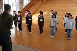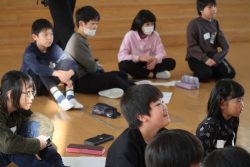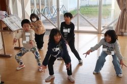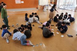 皆んなとても楽しい様子で、笑ったりしていたが、夢中になりすぎてお題が聞こえず進まないことがあった。その時は、いったんワークを止めて、子供達に「どうしたらお題が聞こえるようになると思う?」と意見を求めた。すると手が上がり、「大きな声でお題を言う」「静かに聞く」「向きを変えて目でしっかり見る」などの意見が出た。その後ワークを再スタートすると、皆さっきの意見を意識しているのが分かった。